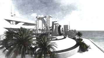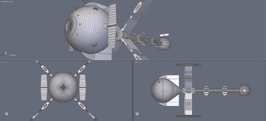 Der im Bild dargestellte Stützpunkt ist ein schwimmendes, halbautonomes Wartungsdock der Raumflotte des Solsystems, speziell für die Comet, das legendäre Einsatzschiff von Captain Future und seiner Crew.