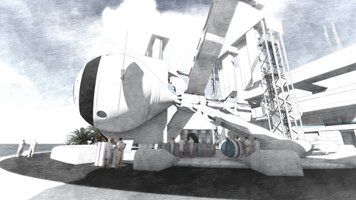 Die Architektur folgt der typischen „Future-Tech“-Ästhetik: klare Linien, funktionsorientierte Bauweise, viel Weiß, modulare Einheiten und robotische Unterstützungssysteme.